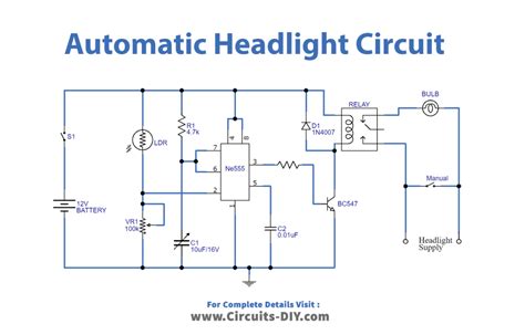Web the circuit is based on a photo transistor (q1) for sensing the approaching vehicles and transistor q2 (bc177) for switching the relays for controlling the. Web this simple circuit can be wired into your headlight switch to provide automatic switching between high and low beam headlights when there is oncoming traffic. Web description this circuit when set up in a car automatically turns off the headlight after a preset time after the ignition switch is turned off.
